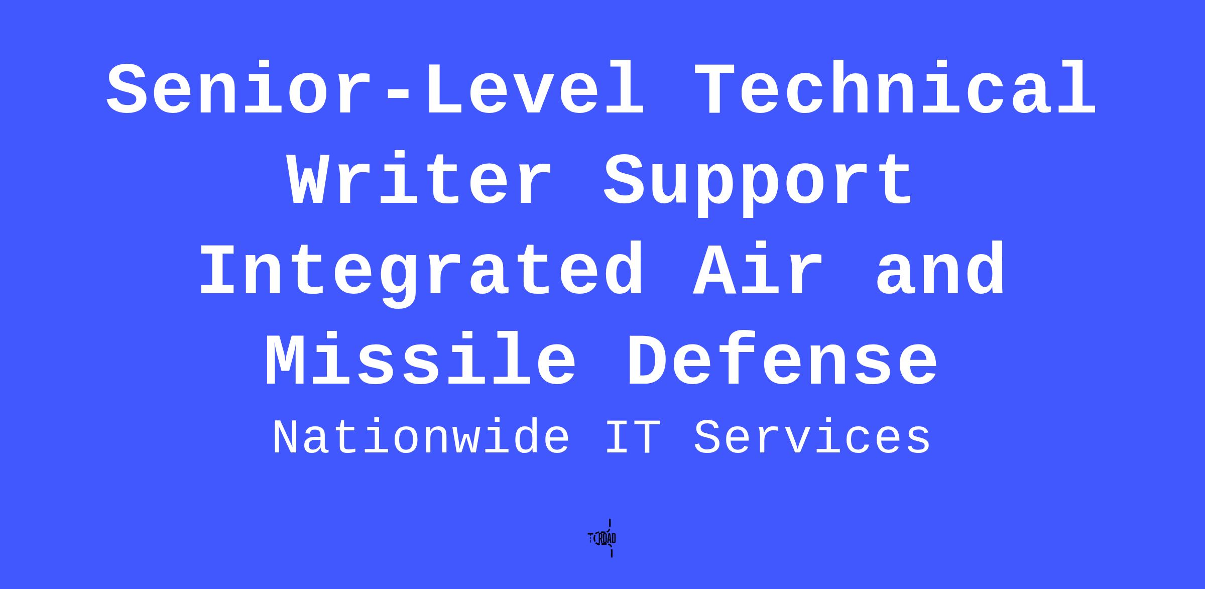 Senior-Level Technical Writer Support Integrated Air and Missile Defense Full Time Possess SECRET clearance and TS/SCI eligible San Diego, CA