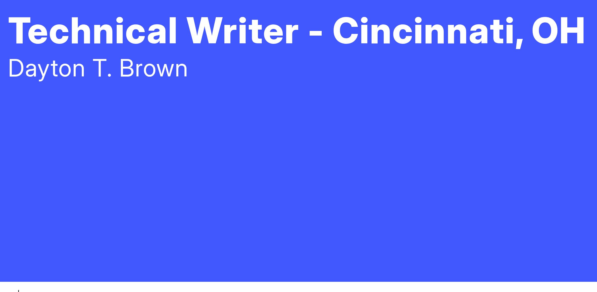 We are seeking a qualified and motivated Technical Writer to join our team in a full-time, on-site capacity. This position is based in Cincinnati, Ohio requires daily in-person attendance. Remote work or telecommuting is not authorized for this role. The ideal candidate will bring a strong commitment to collaboration, communication, and hands-on engagement with our team and operations. If you thrive in a dynamic, in-person work environment and are ready to contribute to impactful projects, we encourage you to apply. You will also be responsible for the following: