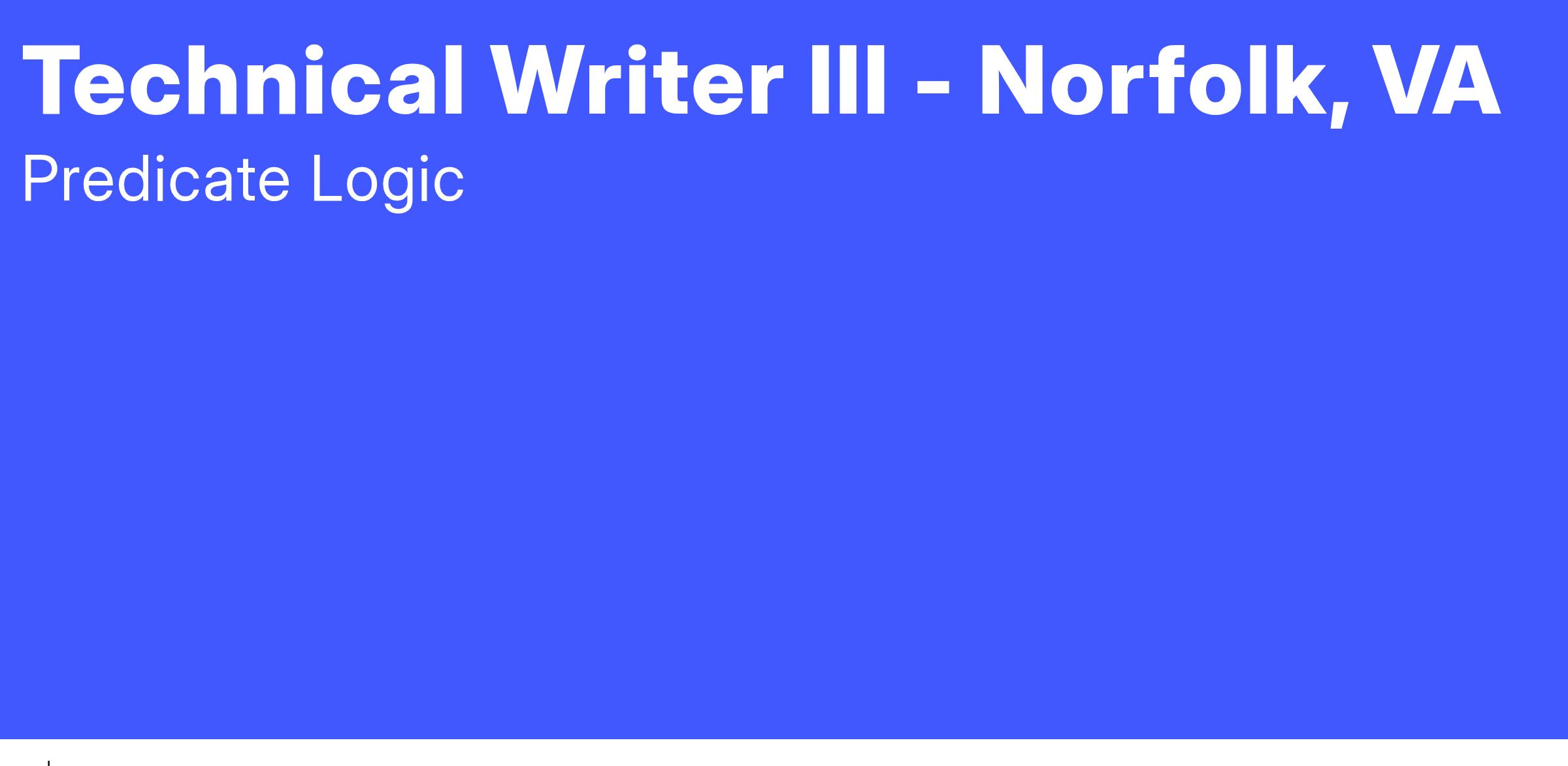 Predicate Logic is looking for a motivated Technical Writer III to join our team in Norfolk, VA.