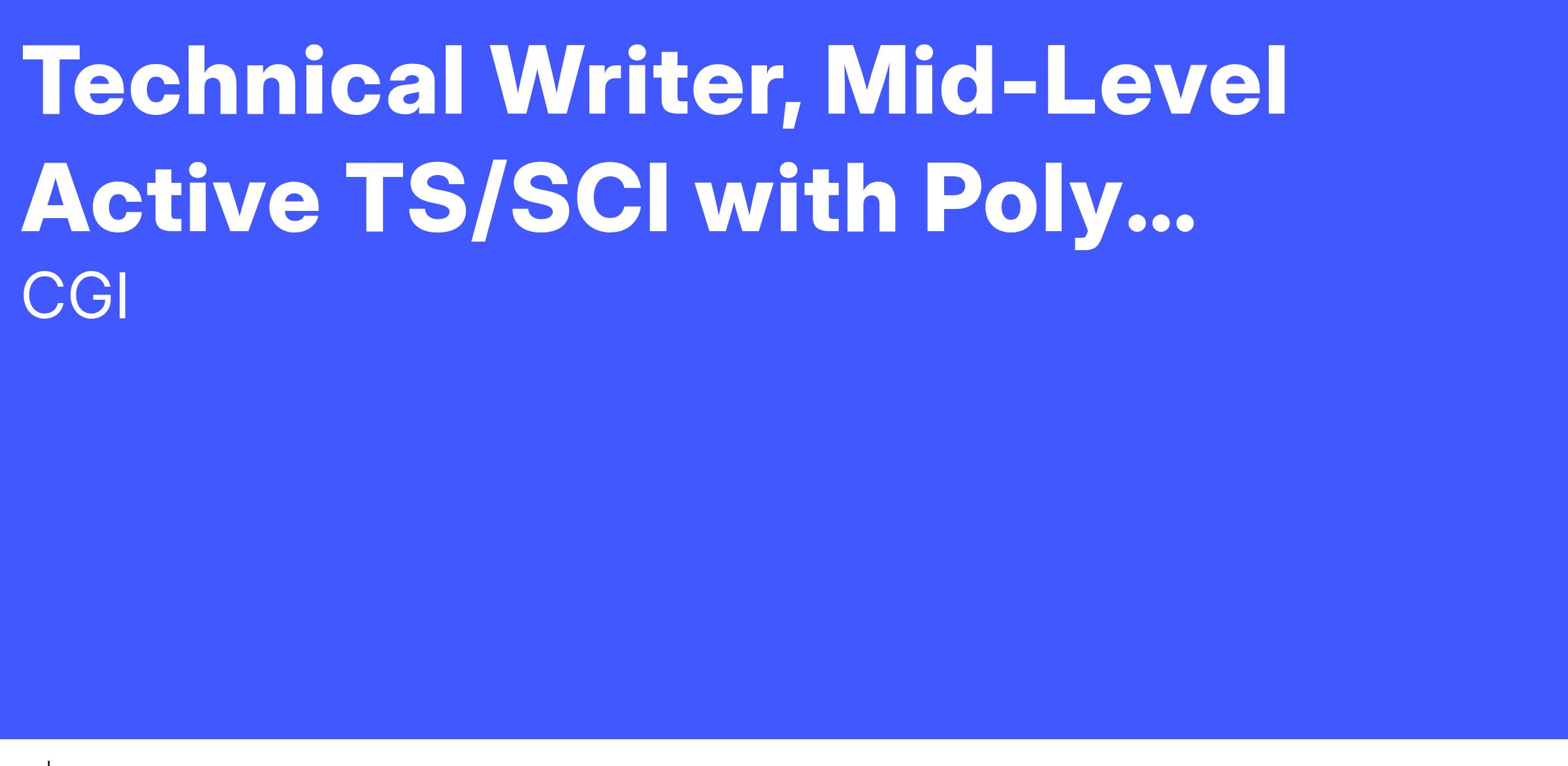 CGI Federal has an exciting opportunity for a Technical Writer within our Intel sector advancing the national security mission through cutting edge technology. You must have a passion for keeping pace with rapidly evolving technology advancements and leveraging your knowledge on a highly collaborative team to deliver state-of-the-art capabilities.